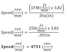 از آنجا که ابزار برش به وسیله قطر آنها به اینچ مشخص میشوند، این فرمول به صورت زیر بازنویسی و ساده میشود: