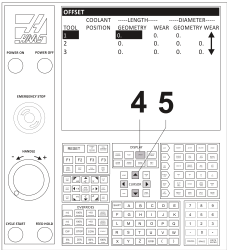 کنترل CNC، افست Z نگهدارنده و افست طول ابزار فعال را با یکدیگر جمع میکند تا فاصله نوک هر ابزار از خانه تا مبدا Z روی قطعه را محاسبه کند.
