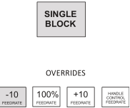 این حالت، فرایند پیش فرض برای اجرای برنامه CNC است. زمانی که برنامه تایید شد، تمام نرخهای فرو رفتن را میتوان روی 100% تنظیم کرد و حالت تک بلوکه را خاموش کرد.