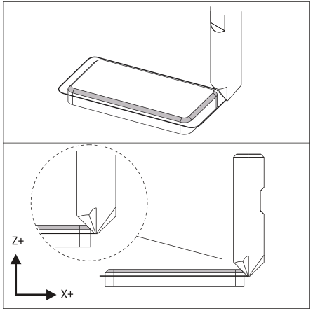 به دلیل اینکه نوک فرز پخ، تیز نیست، در صورتی که ابزار را مانند یک فرز انتهایی تنظیم کنید، عرض پخ ممکن است بیش از انتظار باشد. برای جلوگیری از برش عمیقتر، افزایش TLO به میزان 0.010 اینچ را پس از تنظیم آن در نظر بگیرید. سپس پخ را ماشینکاری کرده، اندازه آن را بررسی کنید و TLO را به اندازه نیاز برای ایجاد پخ با عرض صحیح، کم کنید.
